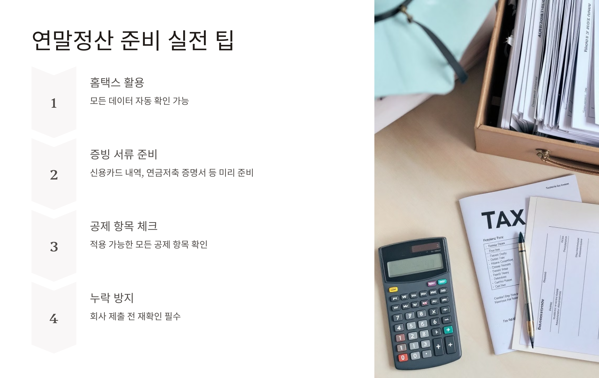 👉 연말정산을 잘 준비하면 세금을 환급받고, 미리 낸 세금을 돌려받을 수 있는 큰 기회가 됩니다.