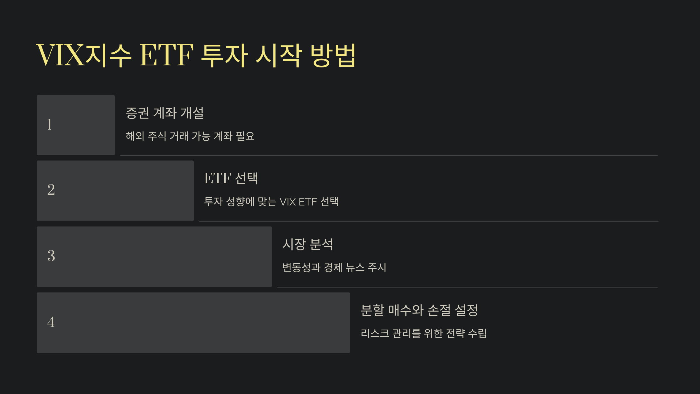 - 초보 투자자라면 레버리지 상품보다는 일반 VIX ETF로 시작하는 것이 좋습니다.
