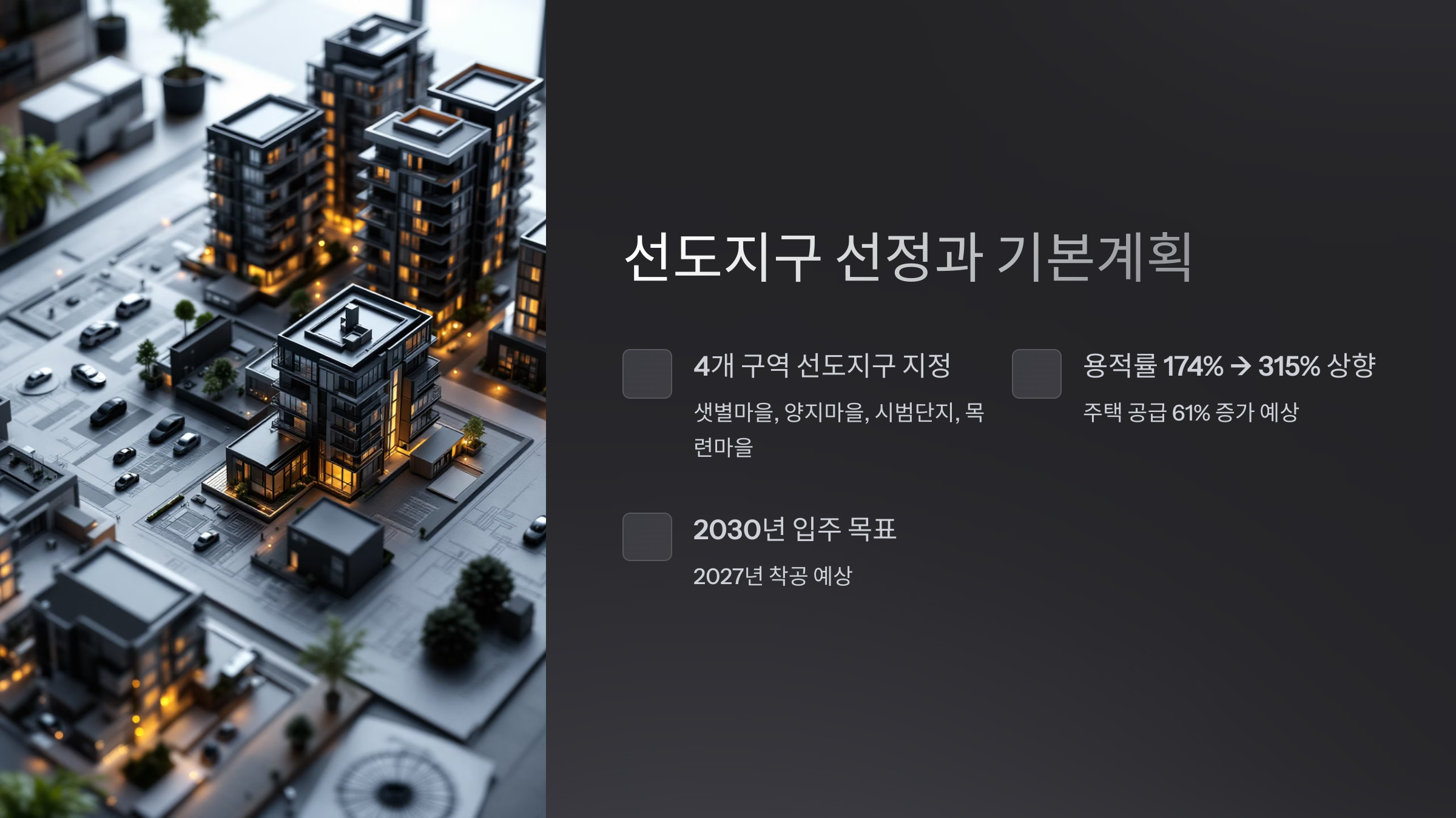 - 2025년 하반기, 추가 선도지구 지정 및 전체 정비 마스터플랜 확정