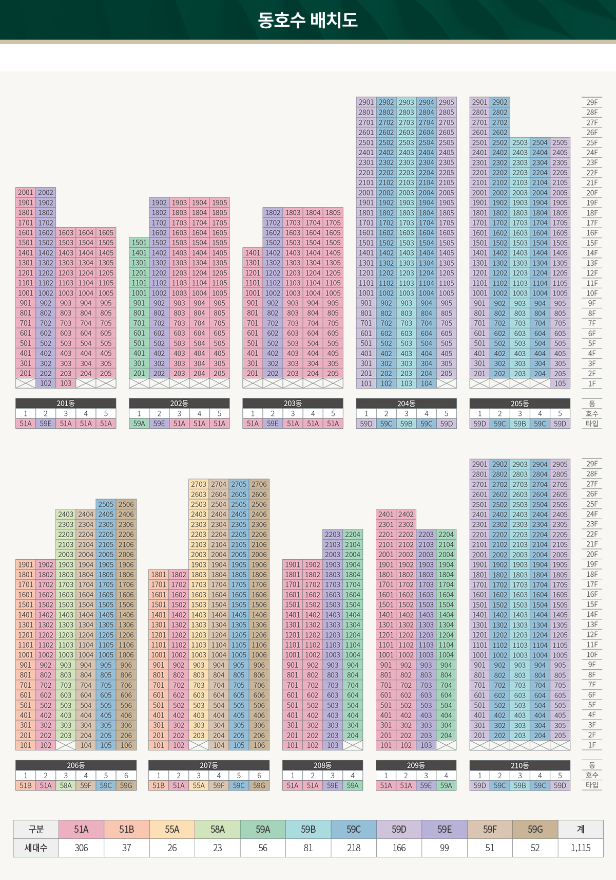 - 51㎡A/B, 55㎡A, 58㎡A, 59㎡A~G 등 다양한 타입
