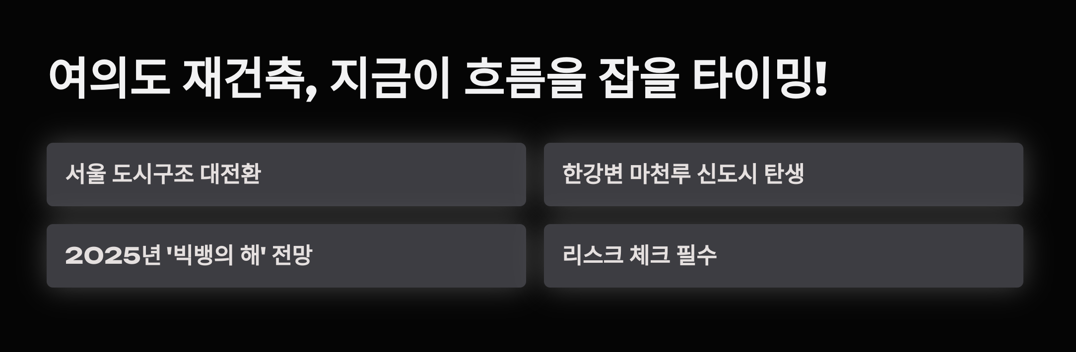 🏁 결론: 여의도 재건축, 지금이 흐름을 잡을 타이밍!