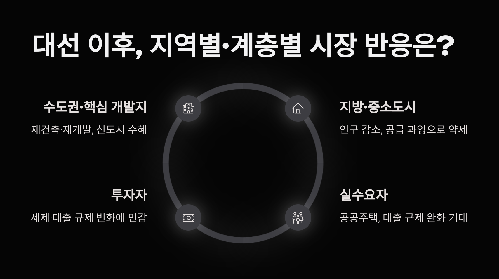 3️⃣ 대선 이후, 지역별·계층별 시장 반응은? 🏢🏘️