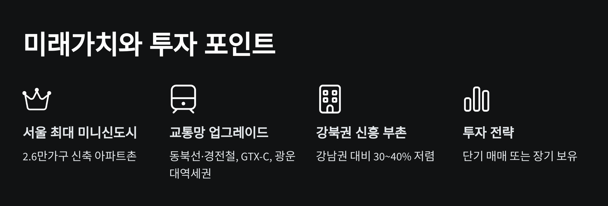 - 동북선·경전철, GTX-C, 광운대역세권 개발 등 미래 호재 집중