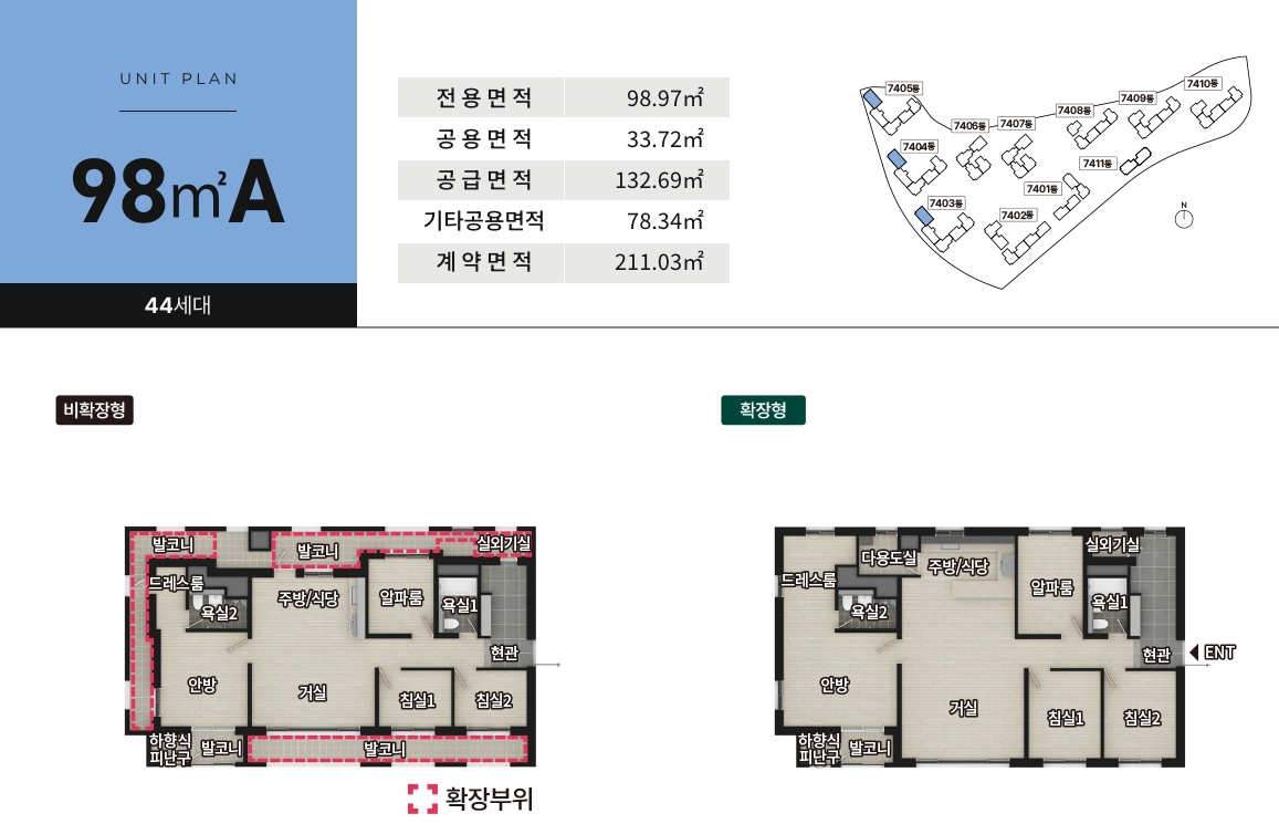 - 면적: 64㎡, 84㎡, 98㎡, 110㎡