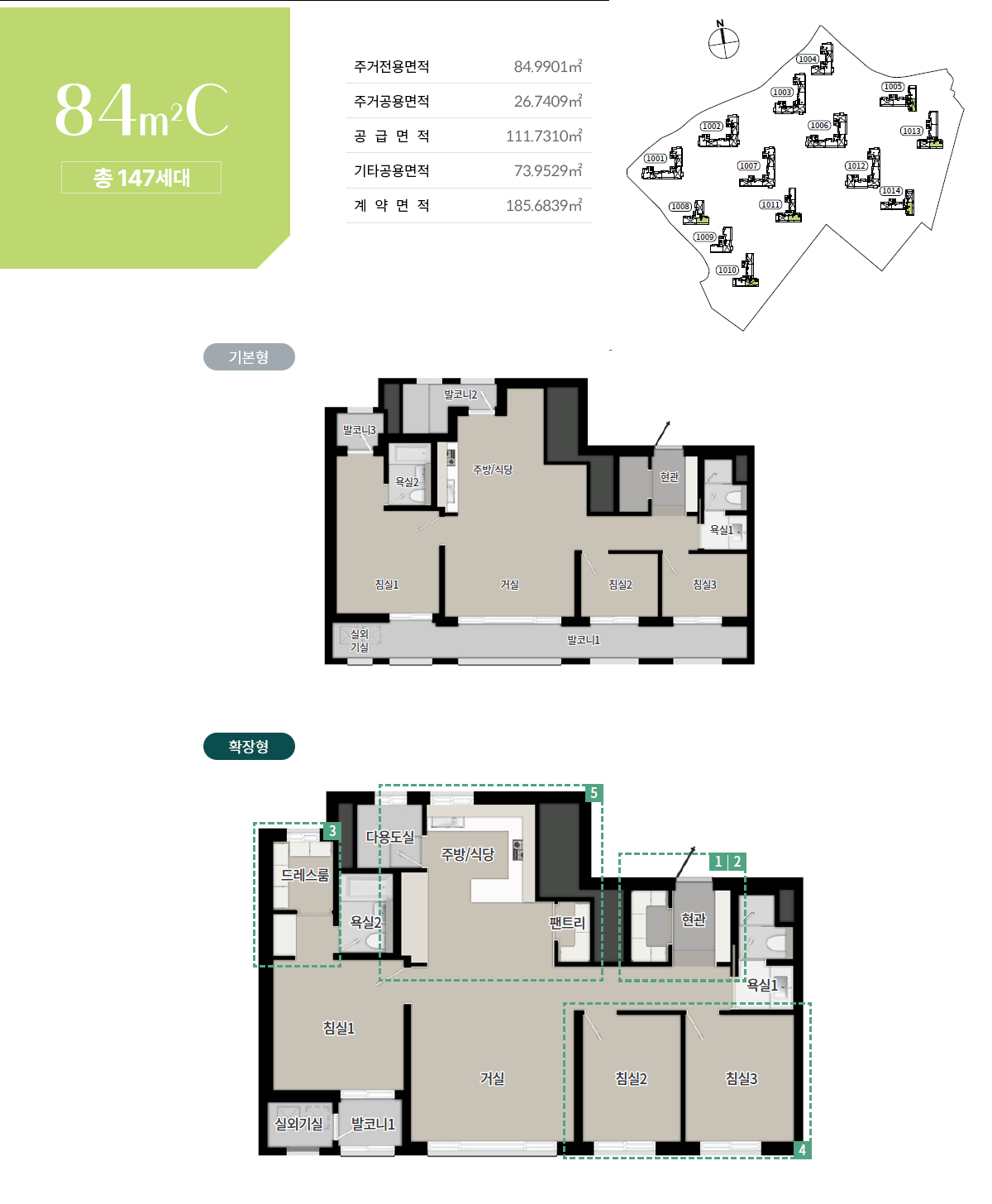 | 84㎡ | 선택1 | 거실, 침실1 | 370 |