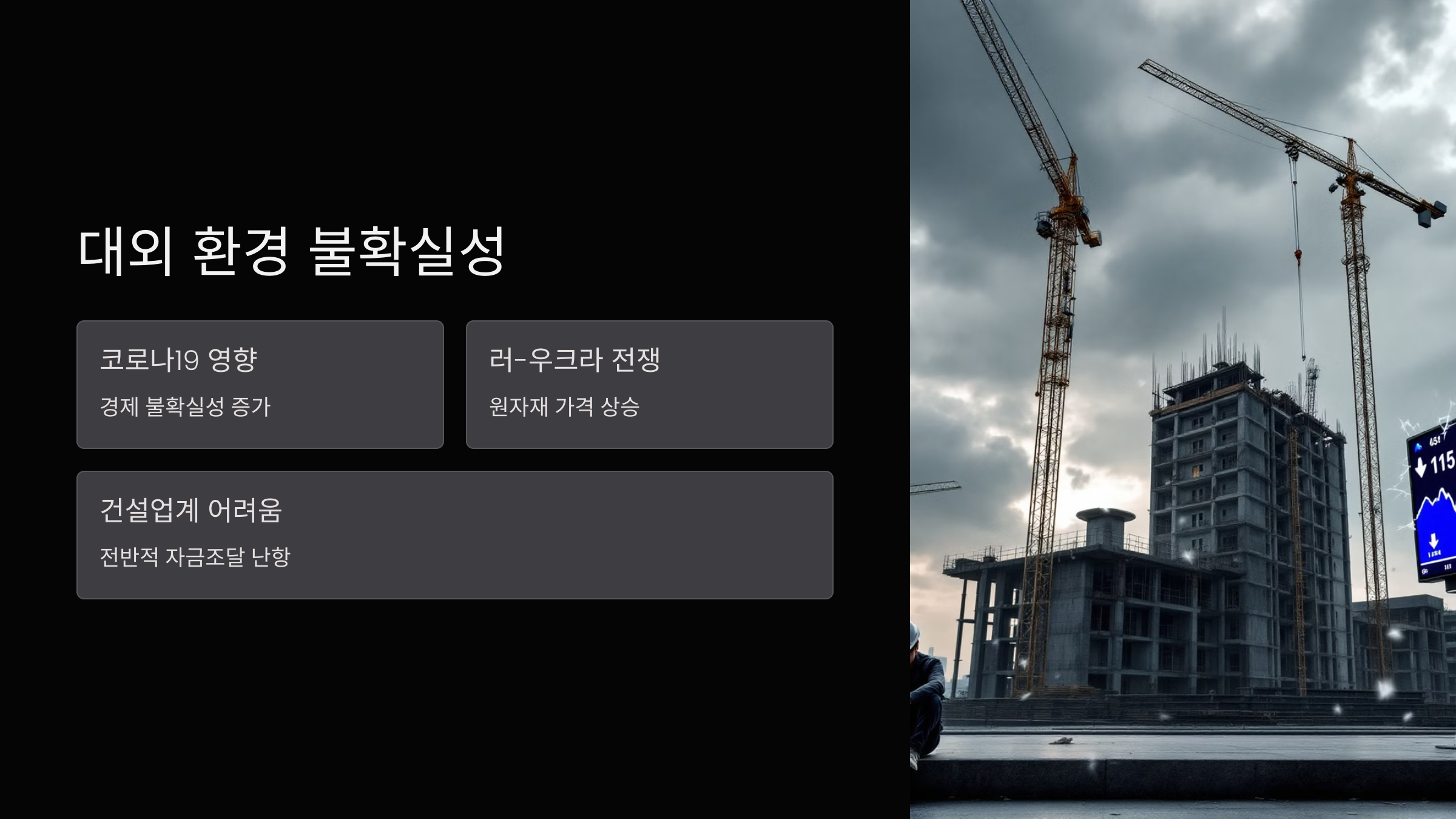 - 이로 인해 건설업계 전반적으로 자금 조달과 사업 진행에 어려움을 겪고 있습니다.