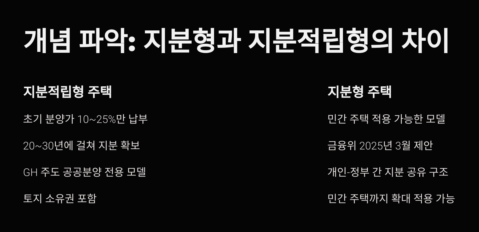 💡 핵심 차이: 지분적립형은 공공분양 전용인 반면, 지분형은 민간 주택까지 확대 적용 가능합니다.