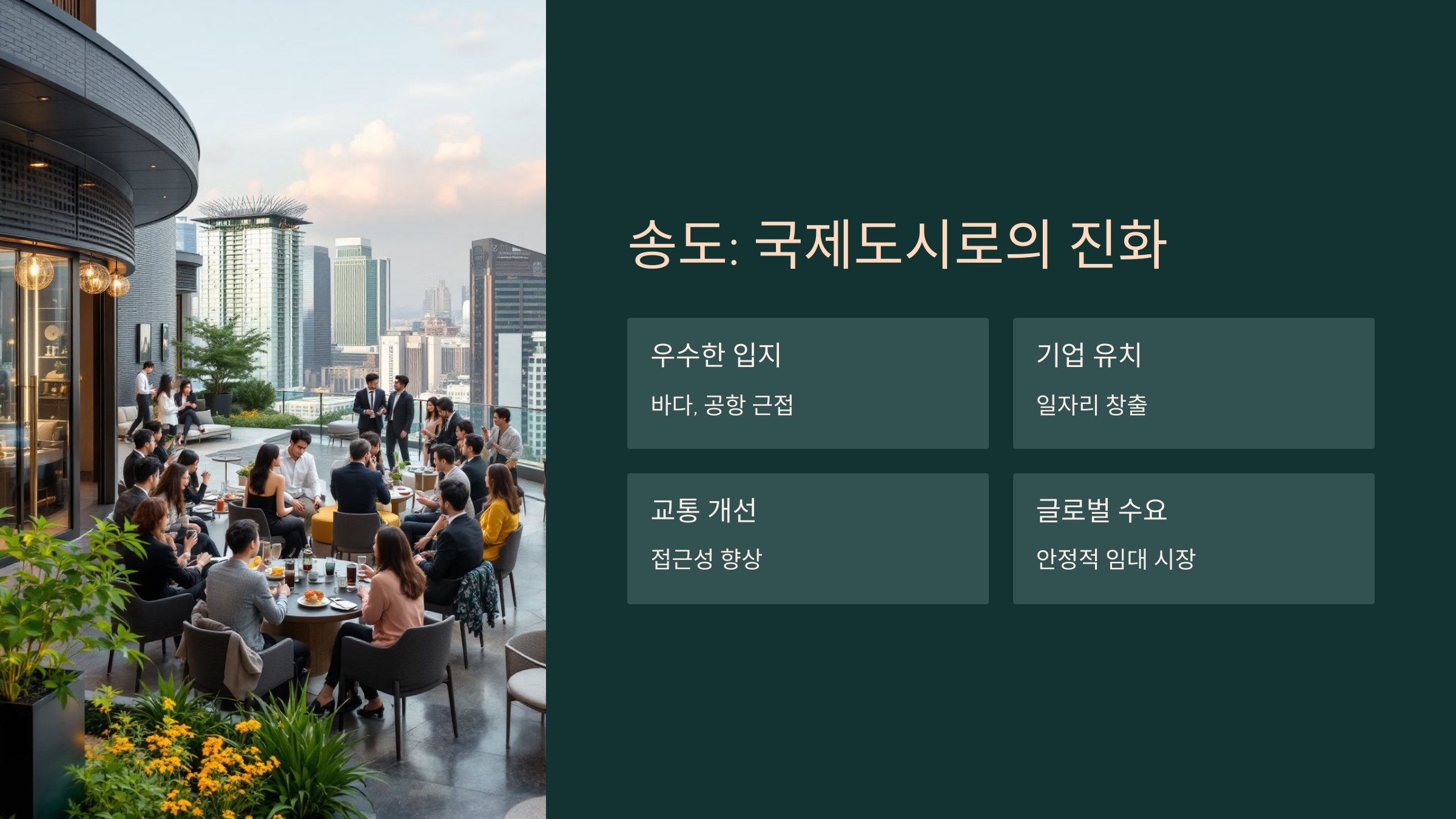 송도는 단순한 신도시가 아니라 ‘국제도시’로 진화하고 있는 중이에요!