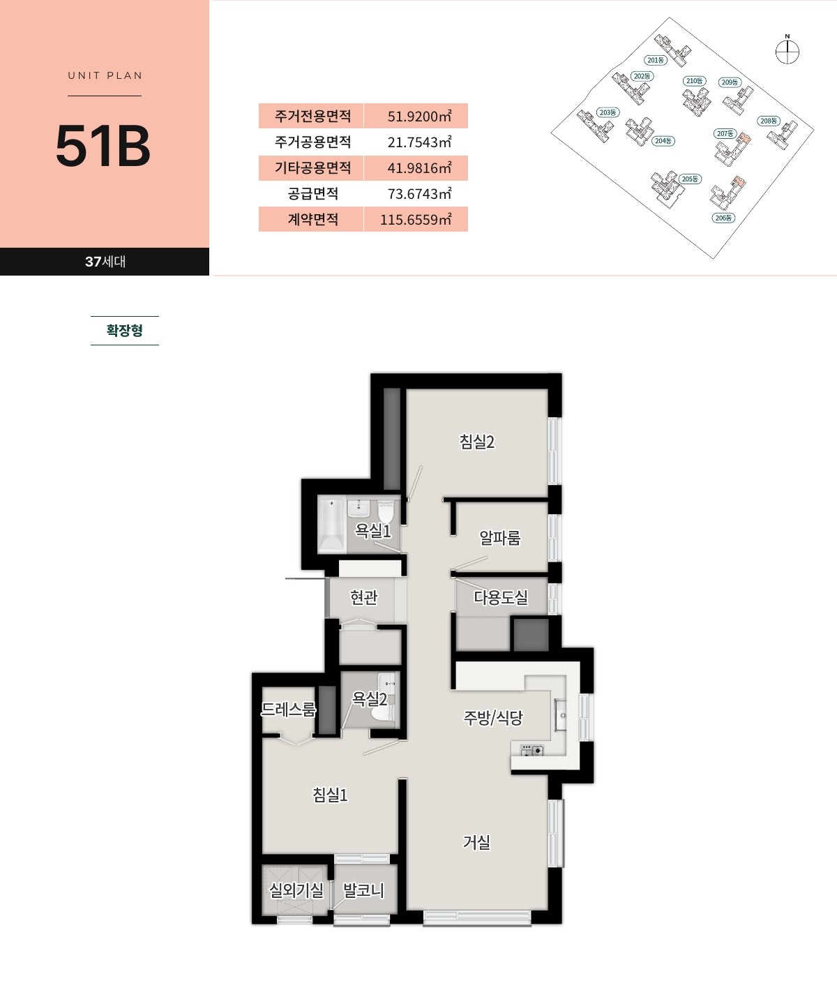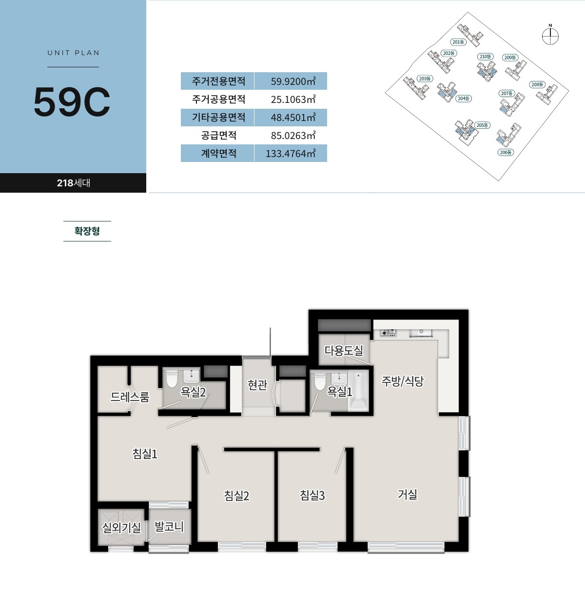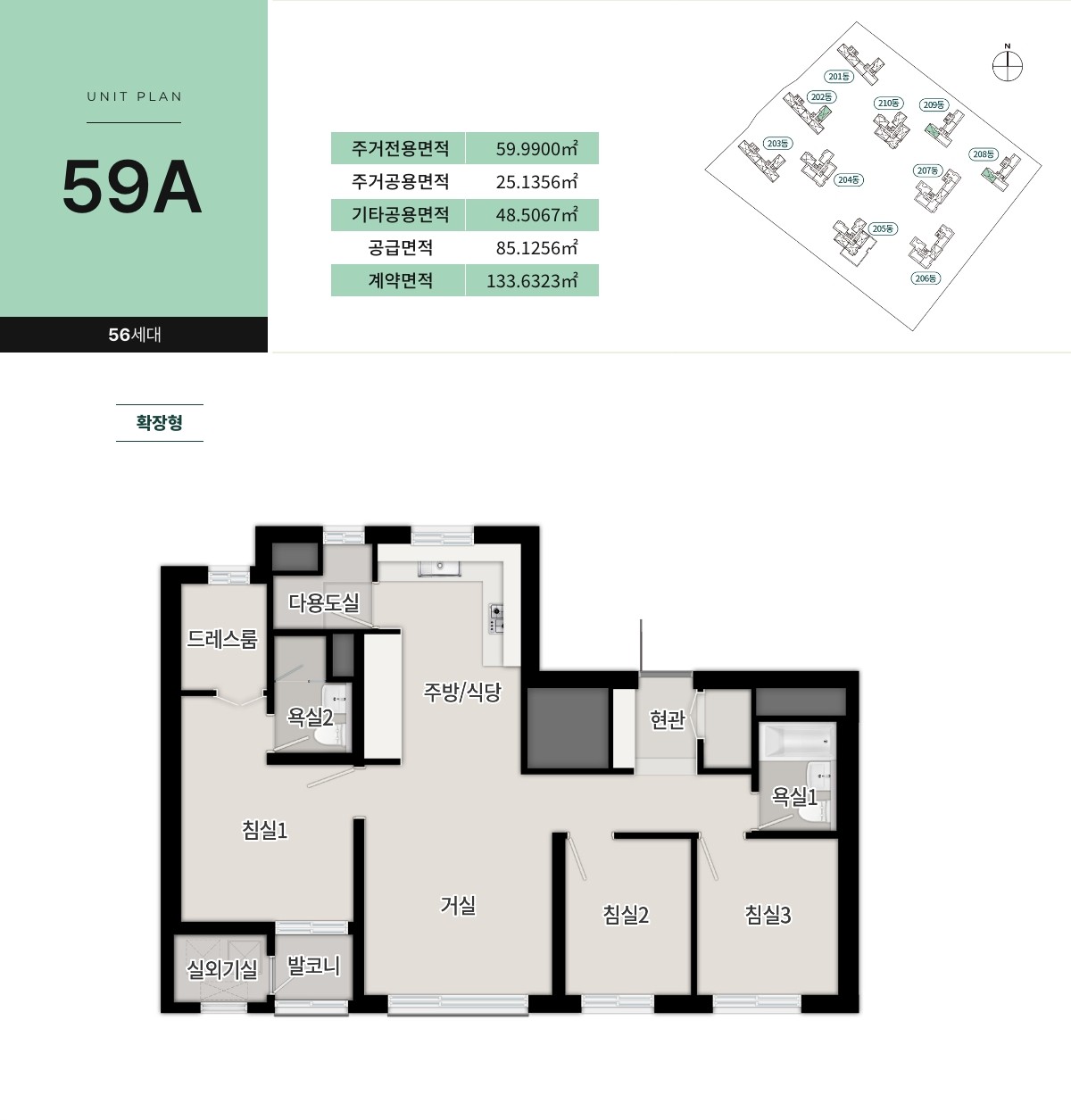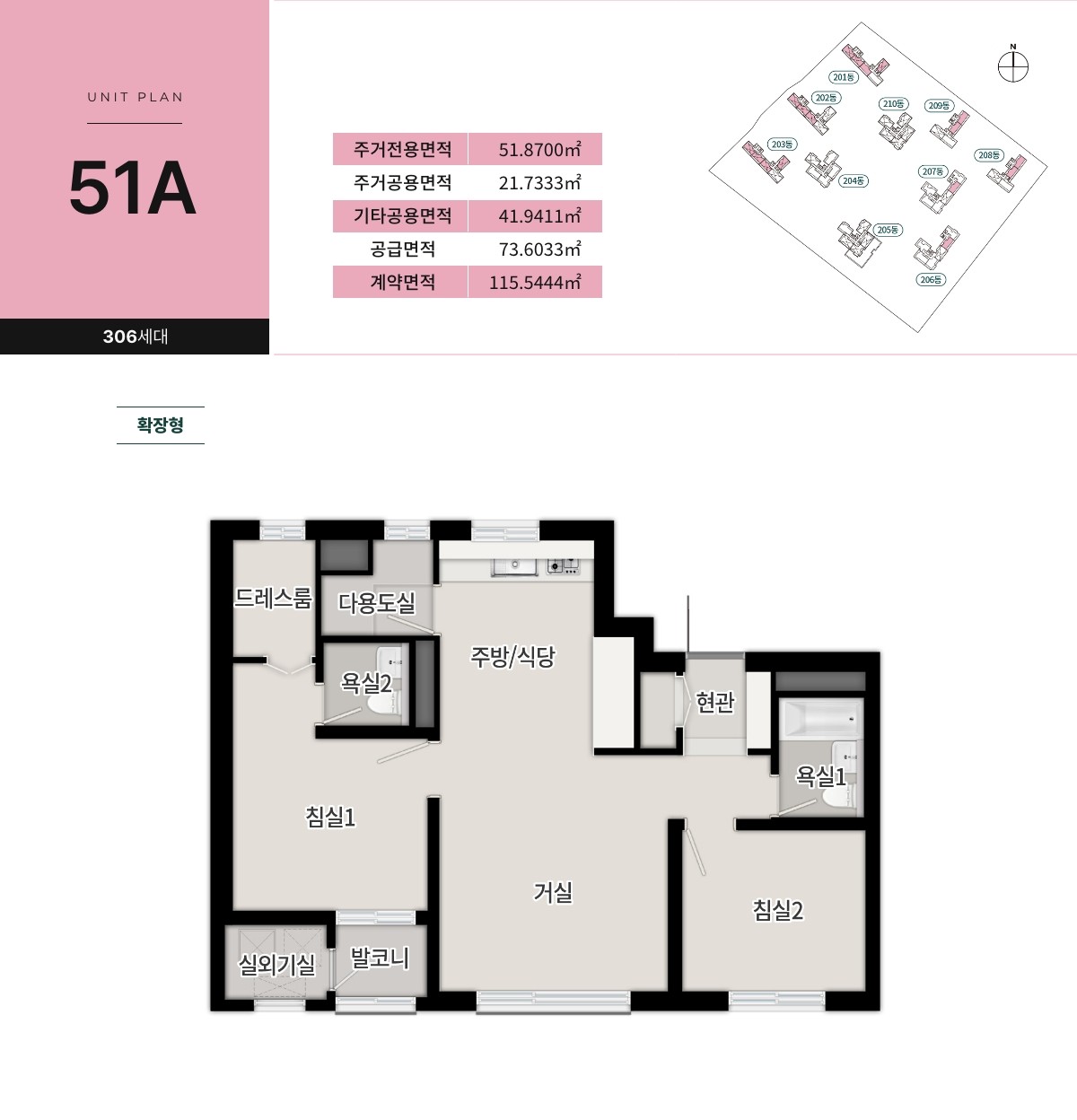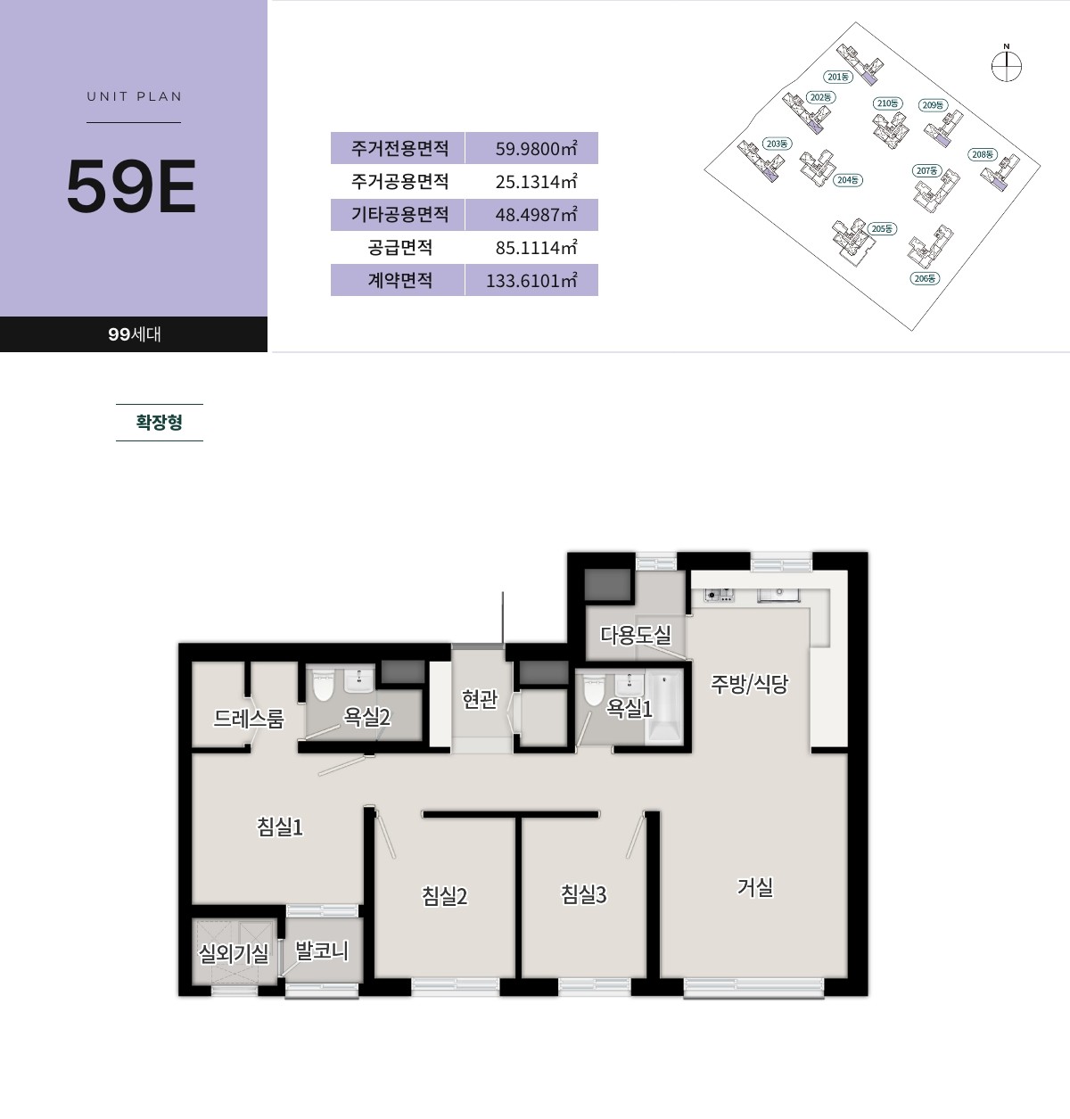 - 51㎡A/B, 55㎡A, 58㎡A, 59㎡A~G 등 다양한 타입