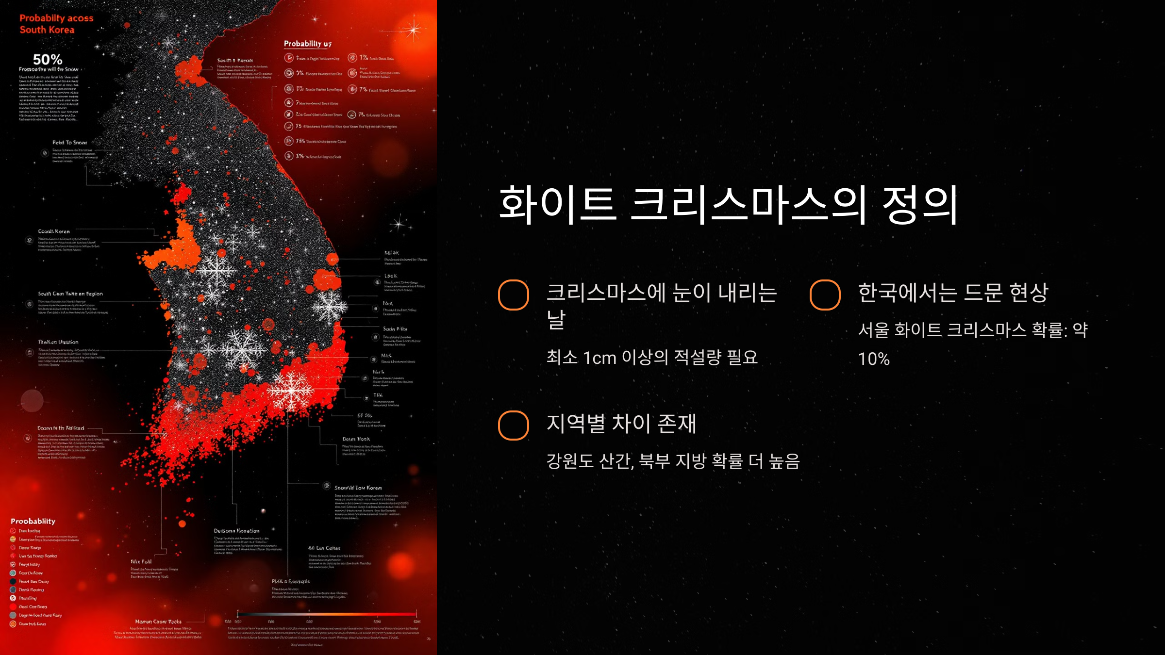 - 화이트 크리스마스 가능성: 높음 (50% 이상)