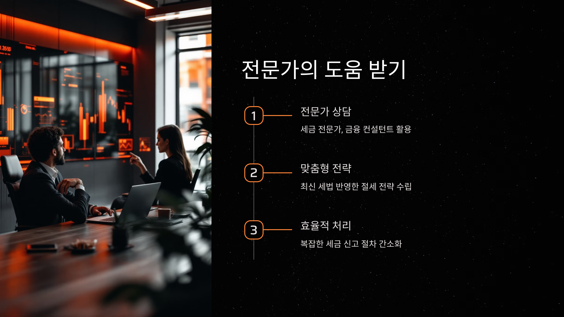 절세 전략은 투자 규모가 커질수록 복잡해집니다. 세금 전문가나 금융 컨설턴트의 도움을 받는 것도 훌륭한 절세 방법입니다.