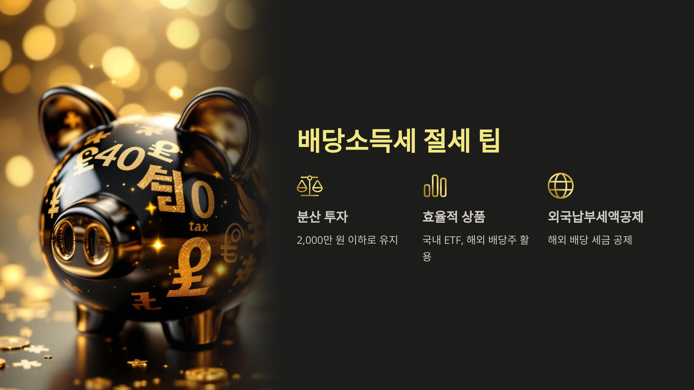 배당소득이 2,000만 원을 넘지 않도록 분산 투자하면 분리과세 혜택을 유지할 수 있습니다.