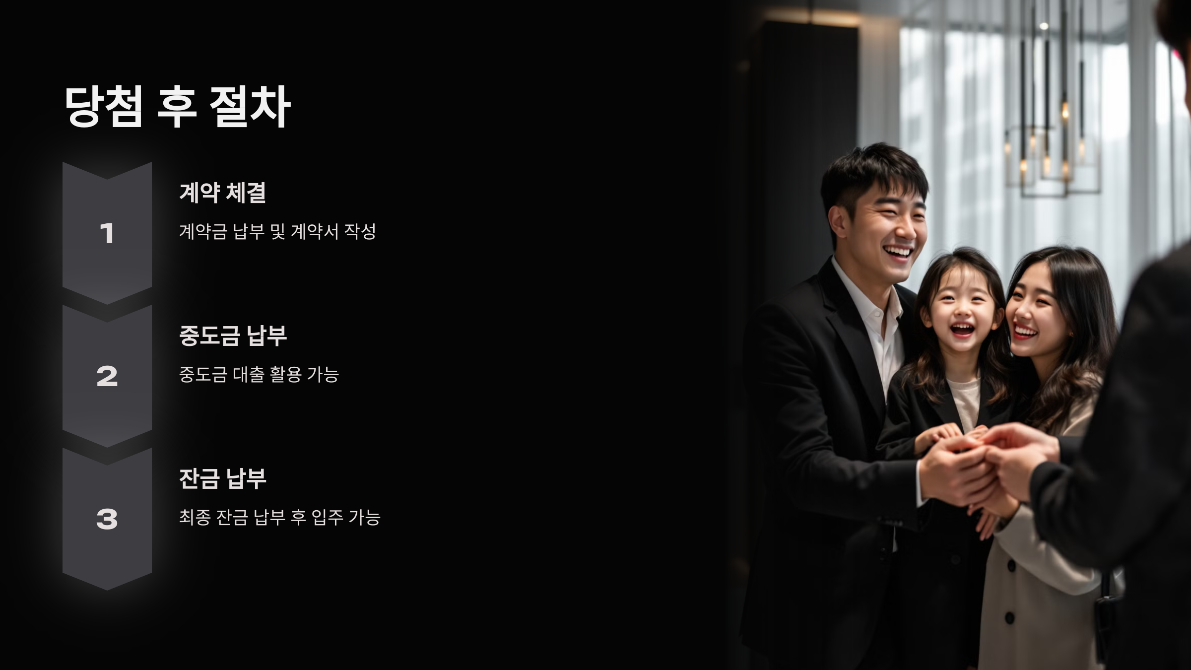 - 당첨 후, 계약금을 납부하고 계약서를 작성합니다.