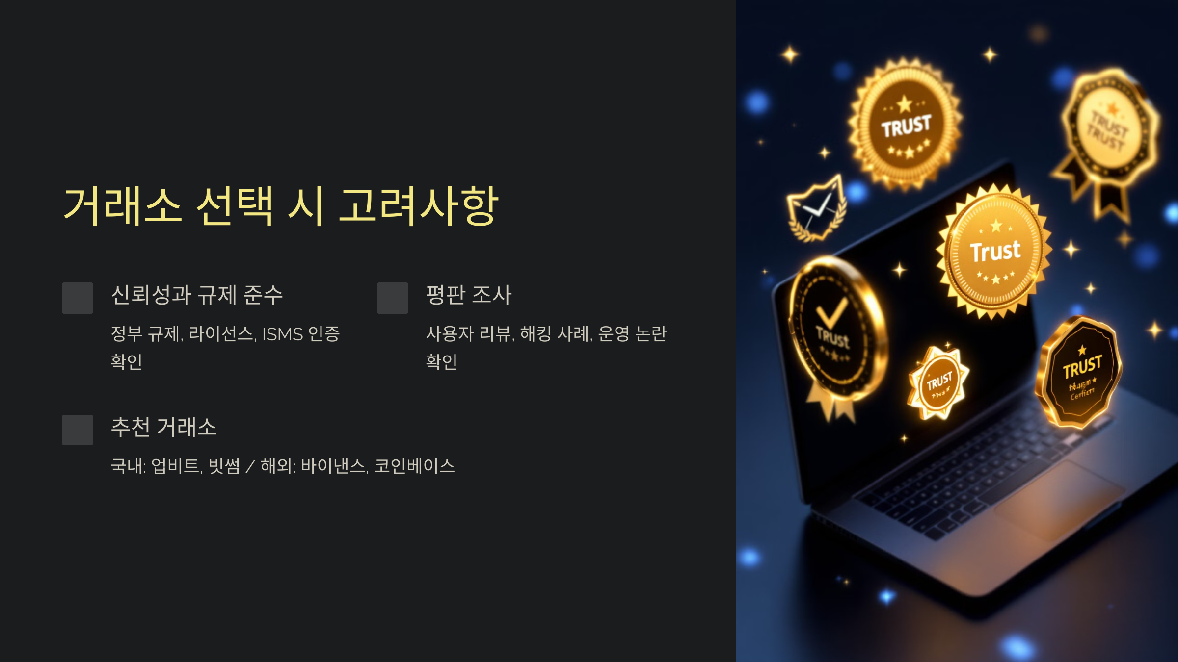 1️⃣ 거래소의 신뢰성과 규제 준수 여부