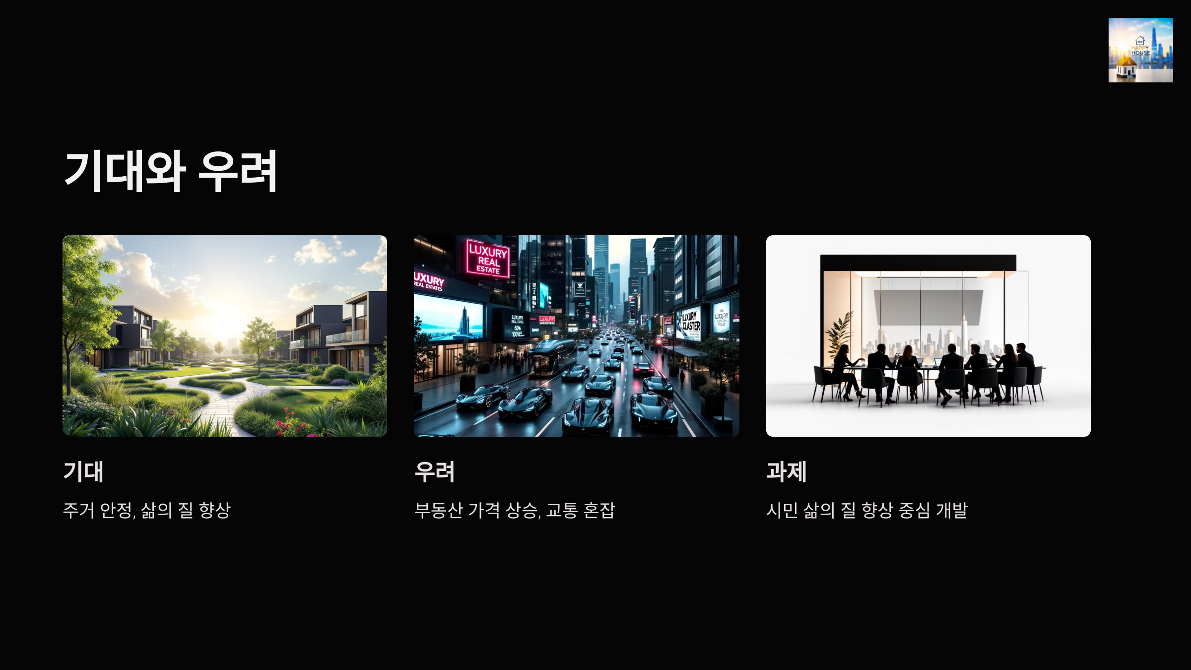- 미래형 도시 모델: 첨단 기술과 친환경 요소를 접목한 새로운 도시 모델 제시