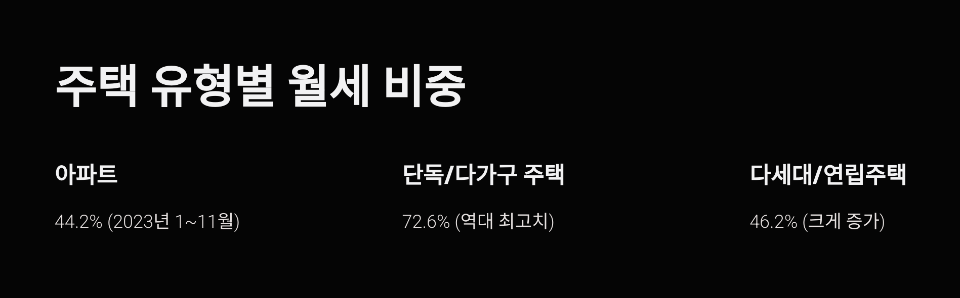 - 아파트: 2023년 1~11월 기준 44.2%로 소폭 증가